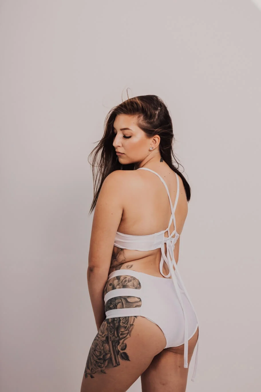 Białe bikini z wysokim stanem